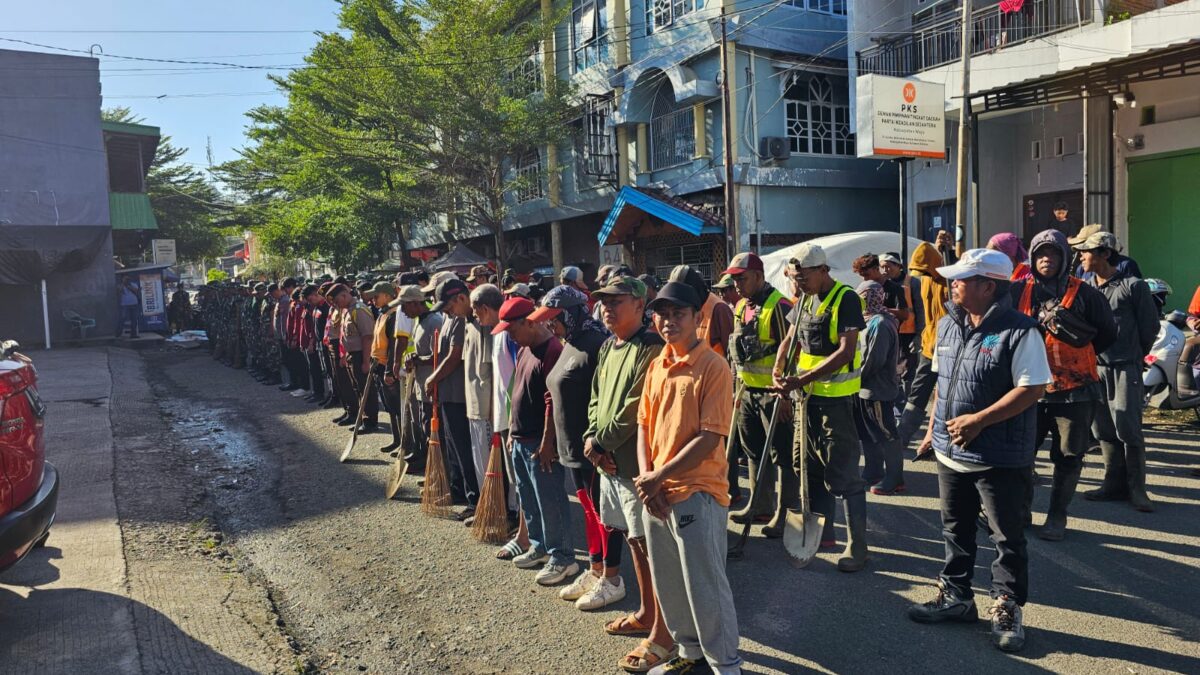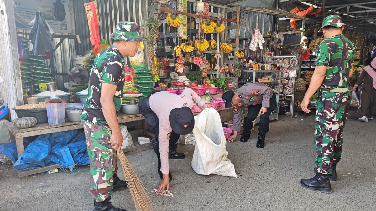 WAJO,PEMBELANEWS.COM – Dalam rangka memperingati Hari Ulang Tahun ke-80 Kemerdekaan Republik Indonesia, TNI, Polri, dan masyarakat melaksanakan kegiatan kerja bakti di Pasar Mini Sengkang, Jalan R.A. Kartini, Kelurahan Padduppa, Kecamatan Tempe, Selasa (12/08/2025).
